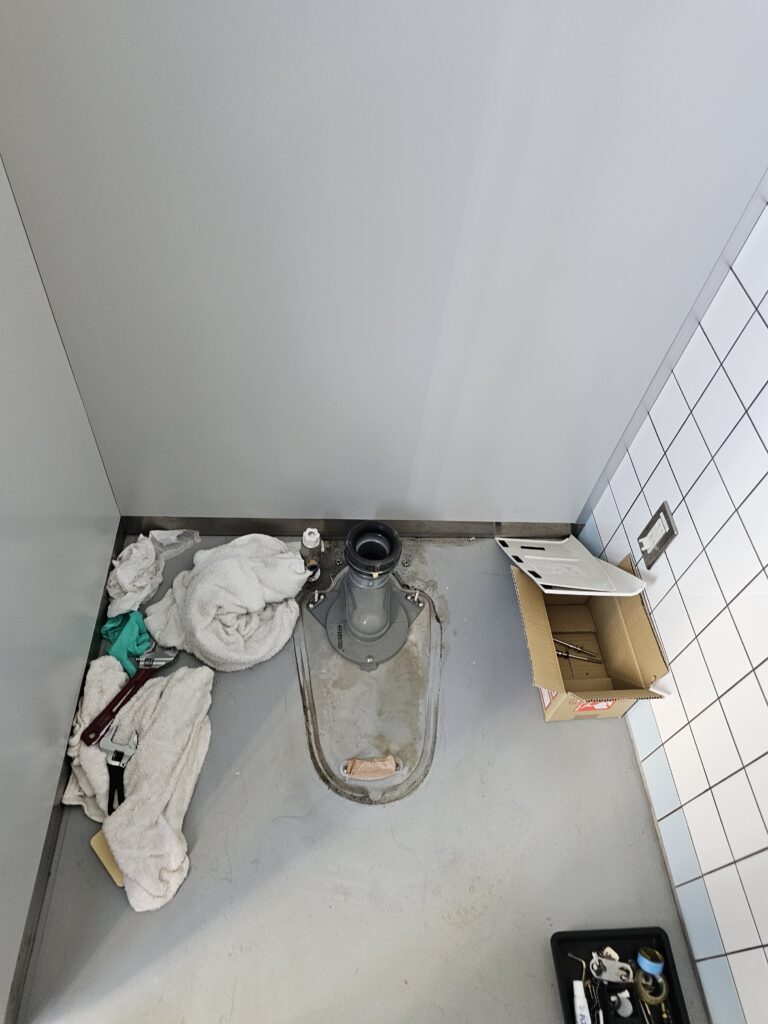 既存機器を丁寧に取り外し、排水位置や給水部分を確認・清掃したうえで新しい便器を設置。